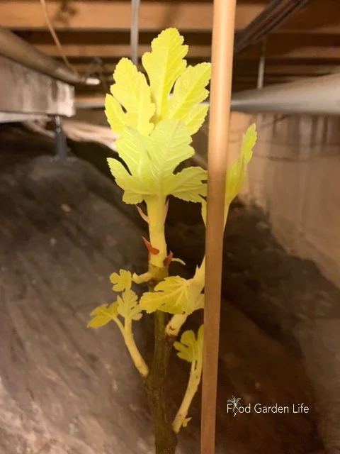 Pinching might seem strange to fig growers in warmer areas, but in a cold climate such as Toronto, I know that I’ll only get 4-6 main crop figs to ripen on a given branch. Then cold weather arrives and we run out of time. So after a branch has 5-6 little figs growing on it, I pinch out the tip. This slows down shoot growth and formation of any additional figs, and directs more energy to those 5-6 little figs we’re hoping to ripen.