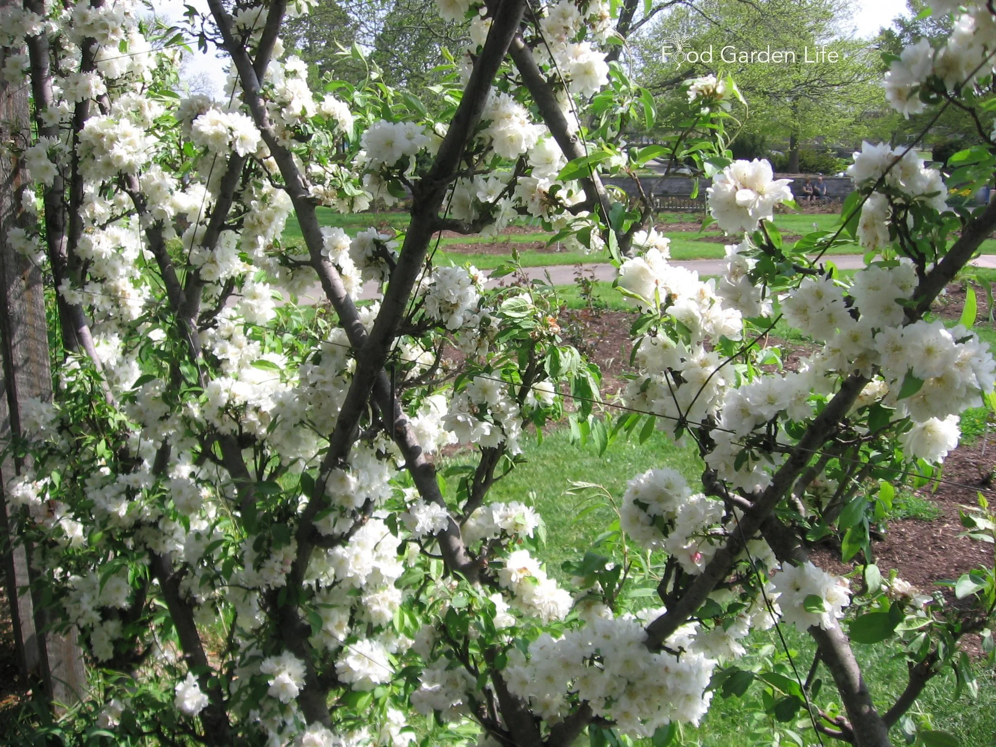 A step-over tree is a low-growing tree grown horizontally so that you can truly just step over it. I’ve seen apple trees growing in the step-over form—and love the appearance.
