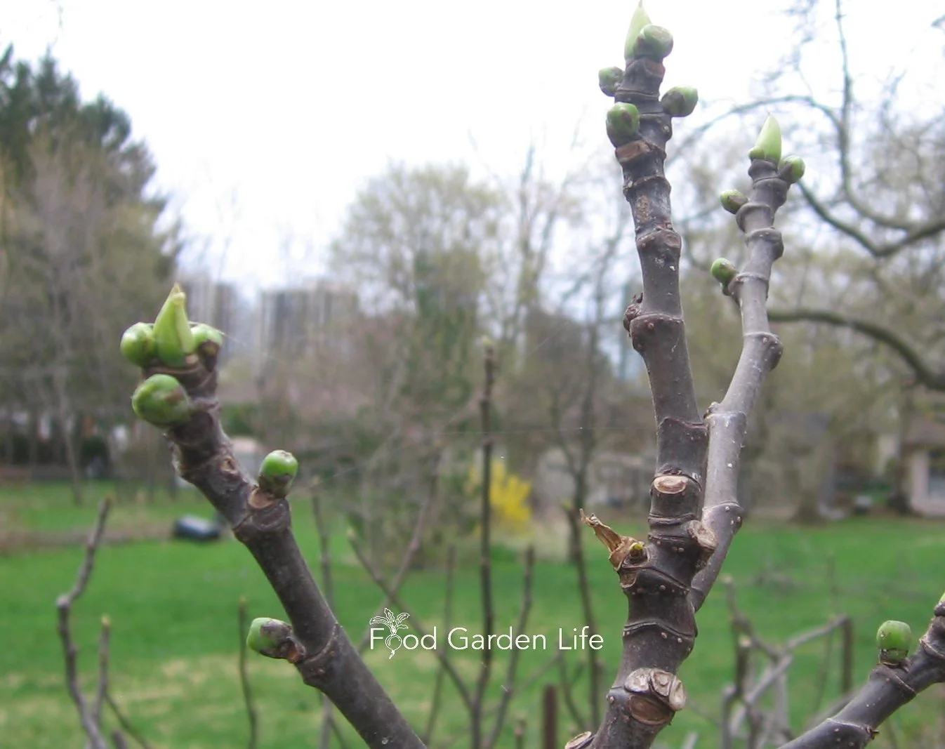 We usually do this pruning while the tree is dormant. If I’m pruning potted figs that I store in my garage, I do this maintenance pruning when they’re dormant in the fall, before moving them indoors—so they take up less space. But for my in-ground figs growing outdoors (which I tip over and mulch for my growing conditions here in Toronto) I prune in the spring. I wait until the branches start to green up and buds swell, so that I can see if there is any winter die-back to trim off.
