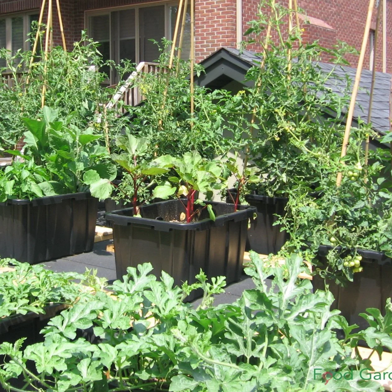 I made a garden on my garage rooftop using sub-irrigated (self-watering) planters.