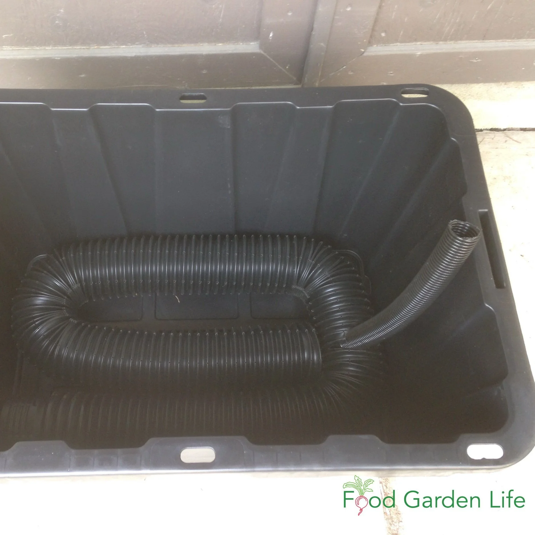 Weeping tile coiled around the bottom of the bin.