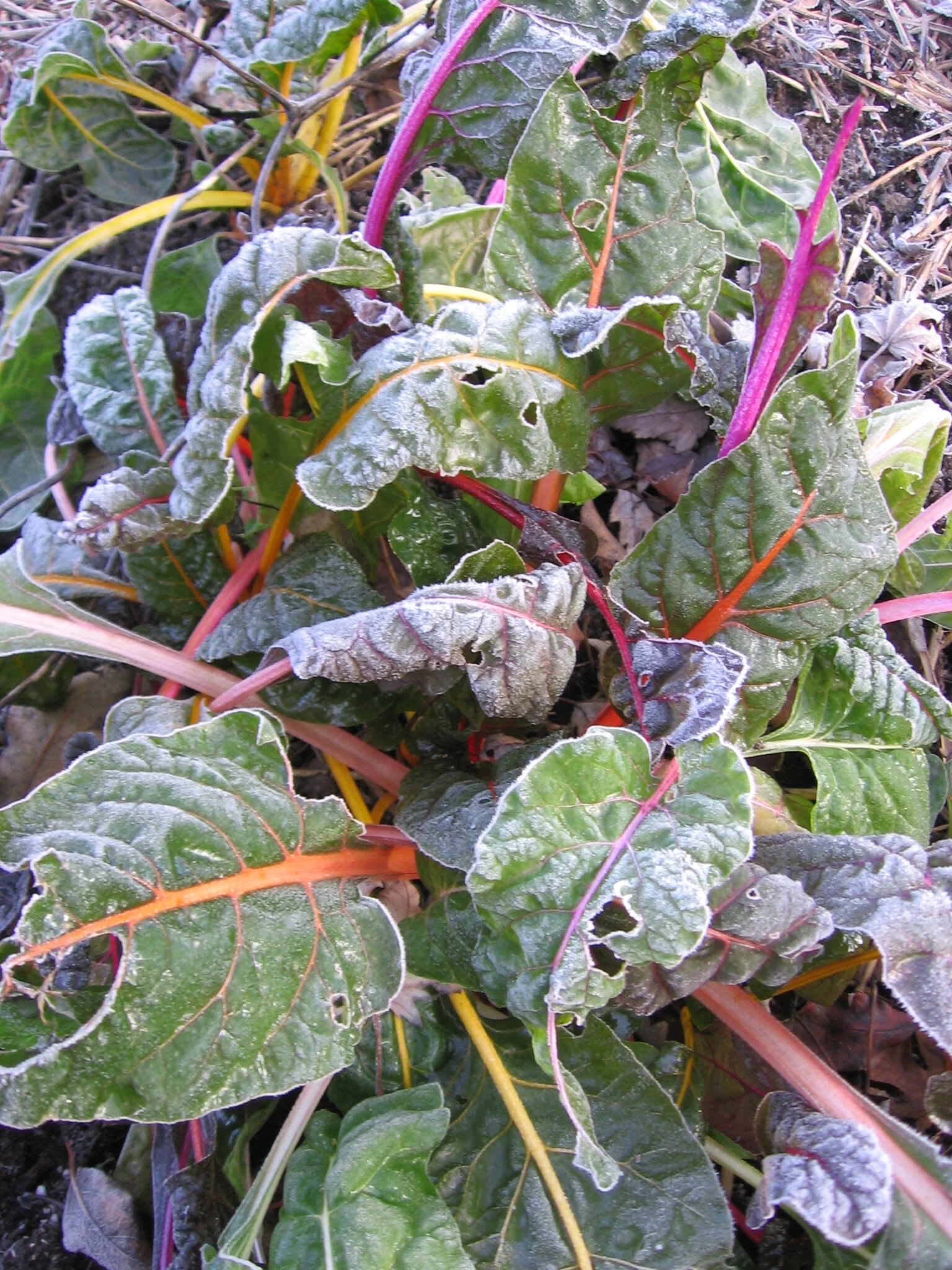 When frost renders swathes of the garden a wilted green-brown, chard still shines. The bright leaves bow to the frost, then spring back up as sunshine warms them.