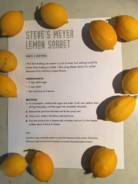 Meyer lemon sorbet recipe from the book Grow Lemons Where You Think You Can’t
